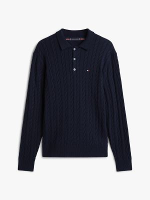 Combining a polo collar with a cable-knit design, this pure combed cotton jumper takes notes from preppy aesthetics.
