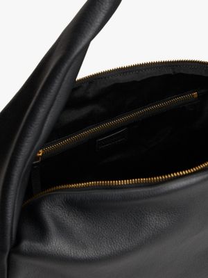 This hobo bag is crafted from leather with a pebble-grain finish and features a slouchy design enhanced by the polished logo plaque.