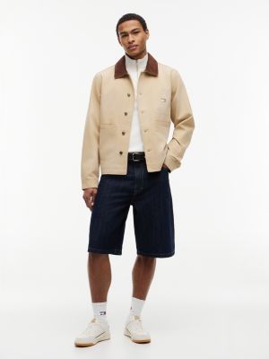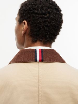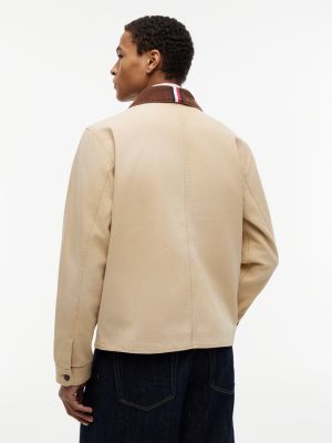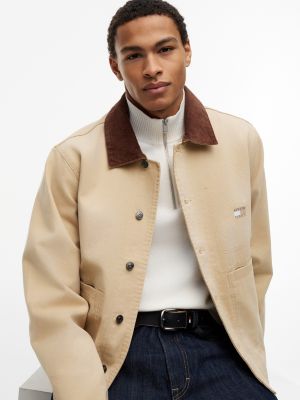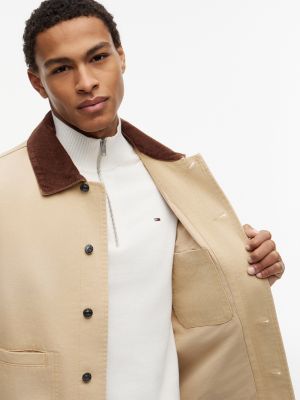 This canvas chore jacket, with a corduroy collar and utilitarian deep pockets, is designed for effortless layering and a heritage-inspired look.