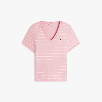 A V-neck design and tightly woven pure cotton fabric with a silky finish elevate this slim-fit T-shirt to a versatile style staple.