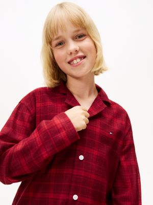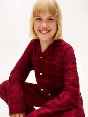 Encourage kids to embrace bedtime with this cosy and classic pyjama set, comprising a shirt and bottoms made from cotton flannel.