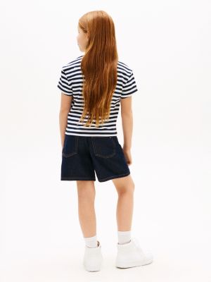 This pure cotton jersey T-shirt is a classic choice with bold horizontal stripes and contrasting script logo embroidery on the chest pocket.