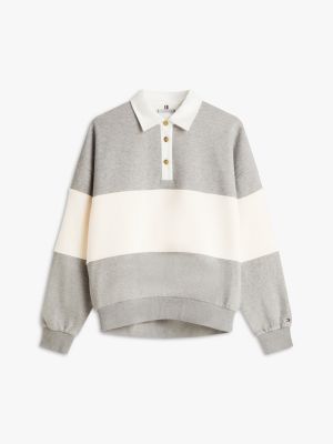This rugby-style cotton-blend flex fleece sweatshirt combines a relaxed fit with gold-tone buttons and sleek logo embroidery, for a more refined aesthetic.