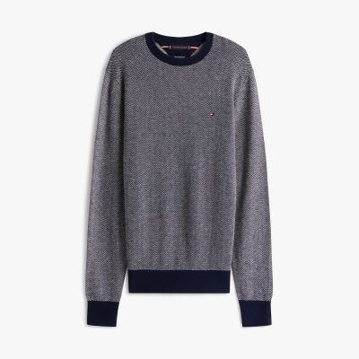 This jumper is crafted from luxurious pure Pima cotton cashmere, while the traditional herringbone design further enhances its refined appeal.