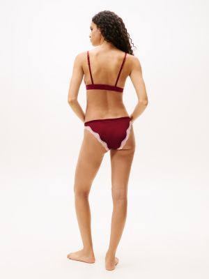 The intricate lace on the cups of this unlined triangle bra brings a luxurious feel to your underwear drawer.