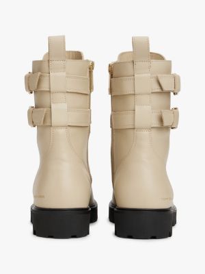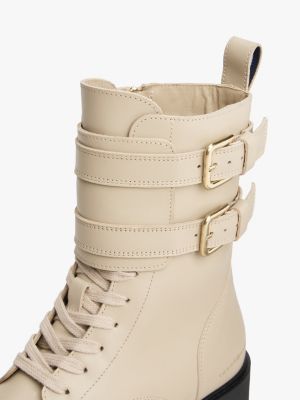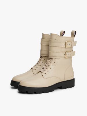 Lean in to the biker aesthetic of these cleated leather boots, designed with a lace-up front and buckled straps at the ankle.