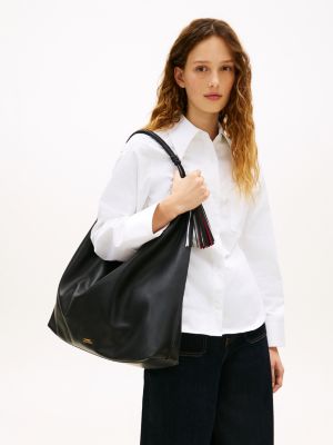 A braided shoulder strap and tassel detail charm add textural flair to the sumptuously slouchy style of this leather hobo bag.