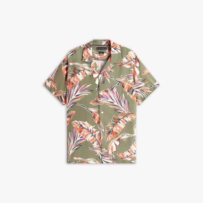 Bring a touch of the tropics to summery looks with this all-over leaf print shirt in a breezy short-sleeved design.