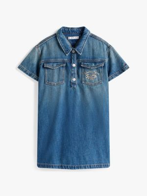 Choose a relaxed look on summery days in this cute denim dress, featuring handy chest pockets and contrasting logo embroidery.