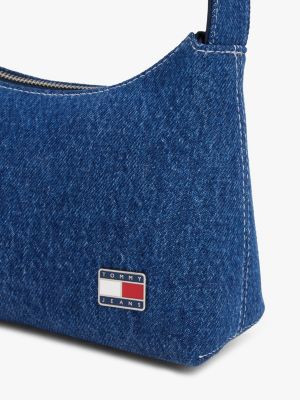 Add '90s charm to outfits with this denim shoulder bag, complete with a Tommy badge plaque on the front.