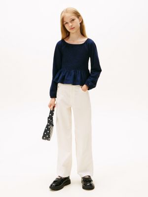 These high-waisted pure cotton corduroy trousers create a laid-back look with their wide-leg shape and subtle hints of embroidered branding.