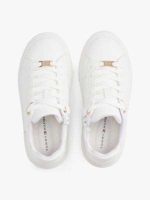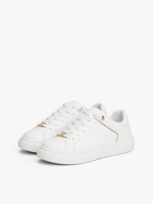 Give everyday looks an eye-catching twist with this pair of lace-up trainers, finished with chic metallic accents and debossed logo detailing.