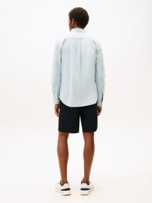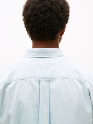 This button-down shirt is made from pure cotton chambray for an elevated textured look enhanced by subtle flag embroidery.