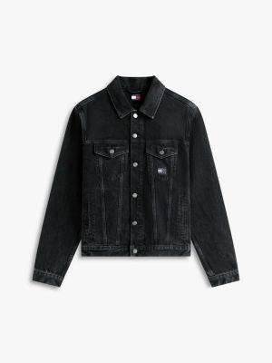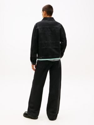 Add the finishing touch to your outfits with this denim trucker jacket, featuring tonal logo detailing on the back for edgy vibes.