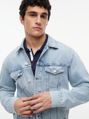 This classic denim trucker jacket featuring colour-blocking on the back delivers authentic vintage character with heritage appeal, inspired by American workwear archives.