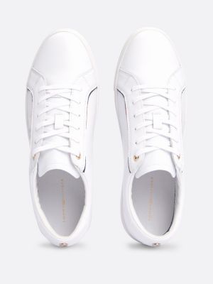 Bring fashion to your feet with these luxe trainers, crafted from a leather mix and featuring a gold-tone TH signature logo.