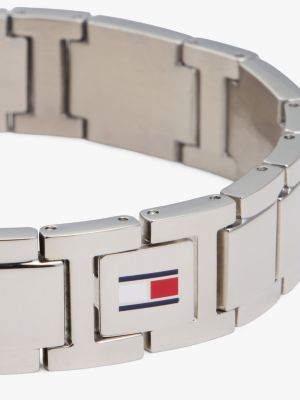 Add a touch of flair to your outfit with this stainless steel bracelet, featuring a flat chain design and signature detailing.