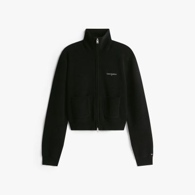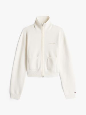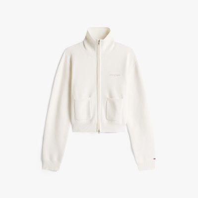 Update your knitwear options with this modern zip-thru cardigan, cut in a relaxed silhouette and decorated with a luxe cross-stitched logo.