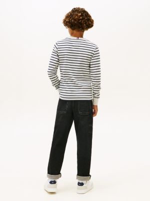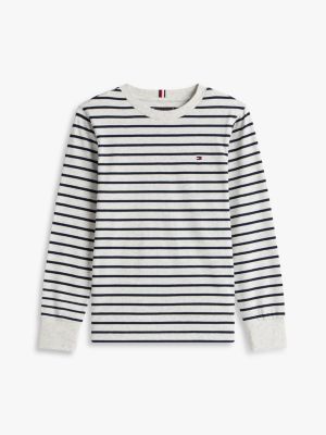 This pure cotton jersey T-shirt features a classic horizontal stripe design and comes with long sleeves, making it a great transitional piece.