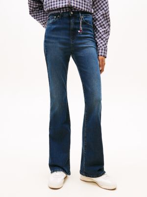 These jeans are cut to flatter with a high-rise waist and slim legs that flare below the knee, evoking a vintage silhouette.