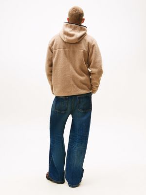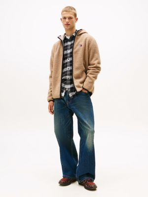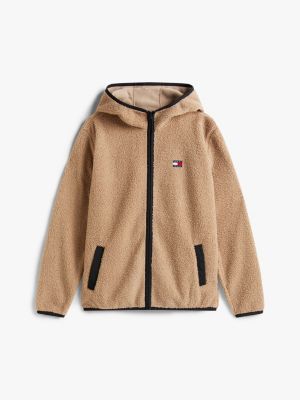 Keep cosy in this tactile zip-thru hoody cut from teddy fleece and finished with contrasting trims and badge embroidery on the chest.