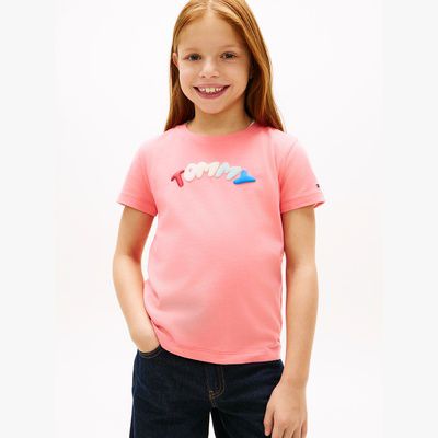This T-shirt is decorated with a playful puff-print logo across the front, adding a fun flourish to the pure cotton jersey fabric.
