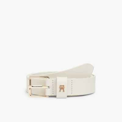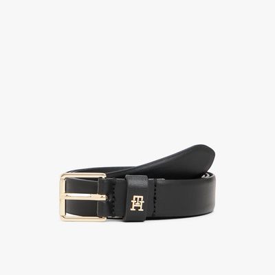 For an understated dose of glamour, this smooth and shiny leather belt showcases a TH monogram plaque on the keeper.