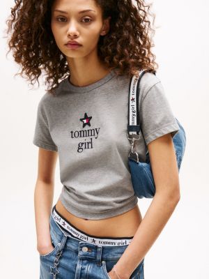 Embrace easy-going vibes in this stretch cotton tee, featuring slightly dropped shoulders and a striking Tommy Girl graphic on the chest.