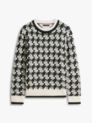 Get into the festive mood with this jumper, knitted in a contrasting houndstooth check with a chunky texture for a standout look.